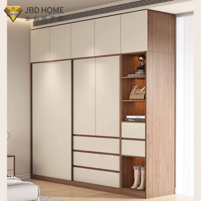 3. Equipped with smooth, low-friction sliding doors, this wood wardrobe bedroom furniture saves up to 30% floor space compared to hinged models. The soft-close mechanism operates quietly at under 35 dB, ensuring comfort during daily use. Each door supports up to 60 kg, making it ideal for heavy clothing and accessories.